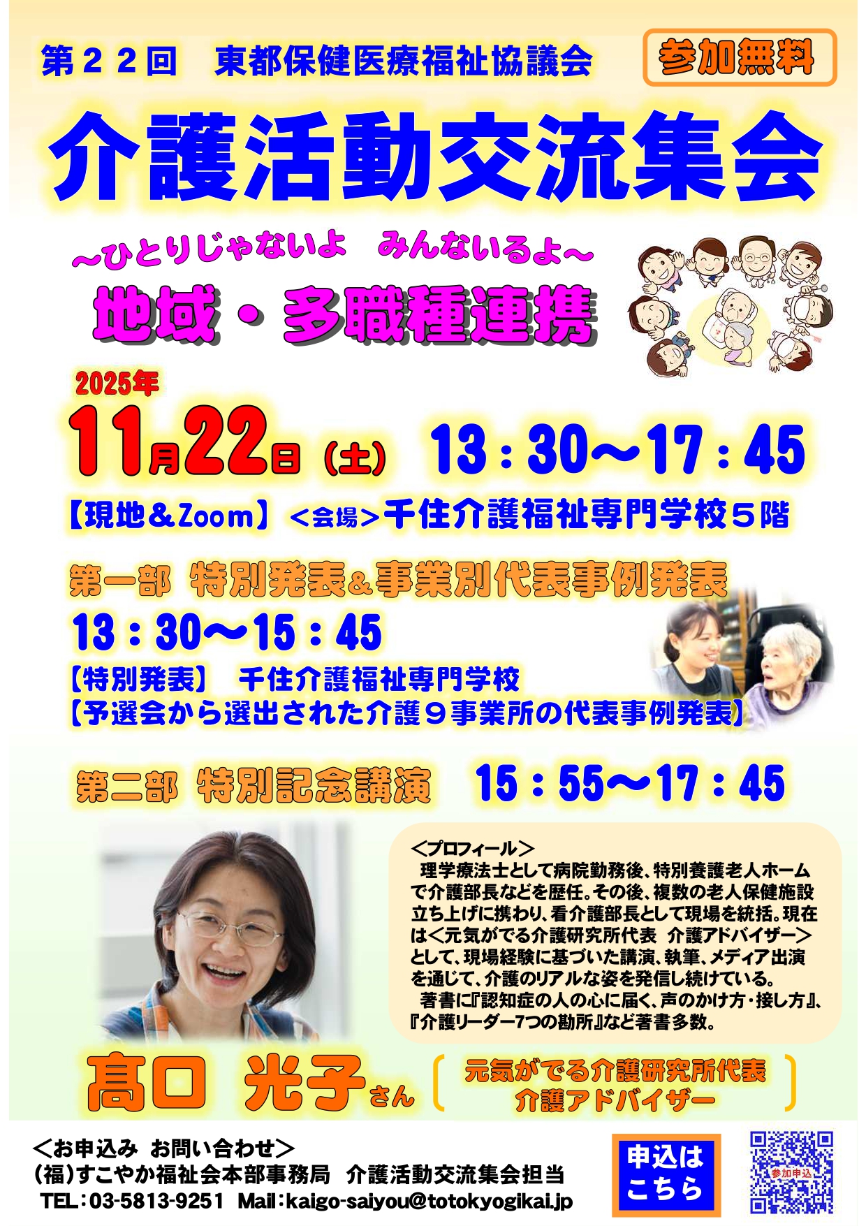 参加申し込み/お問い合わせ (福)すこやか福祉会本部事務局 介護活動交流集会担当 TEL03‐5813‐9251