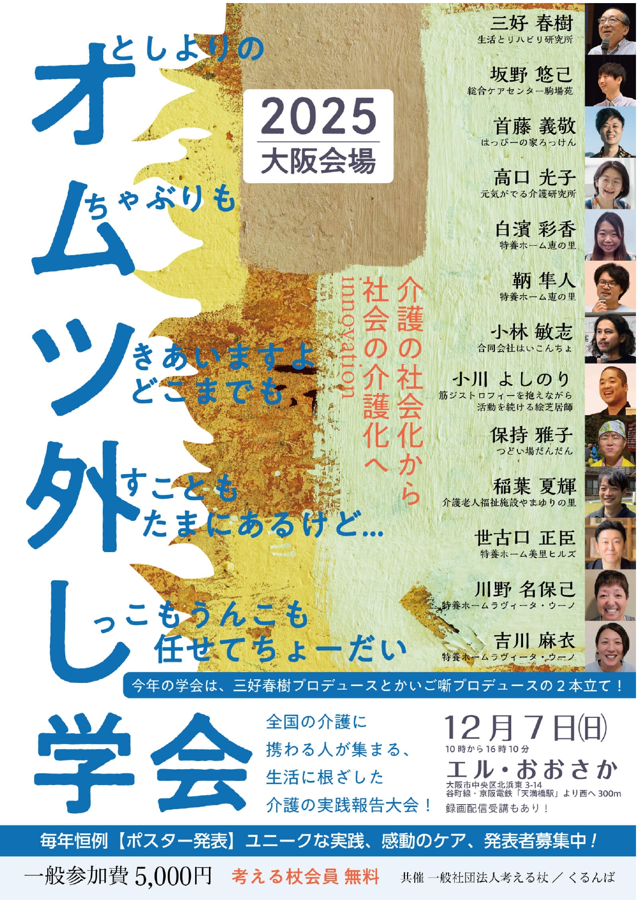 一般参加費5,000円 考える杖会員無料 オムツ外し学会 2025大阪会場 介護の社会化から社会の介護化へ