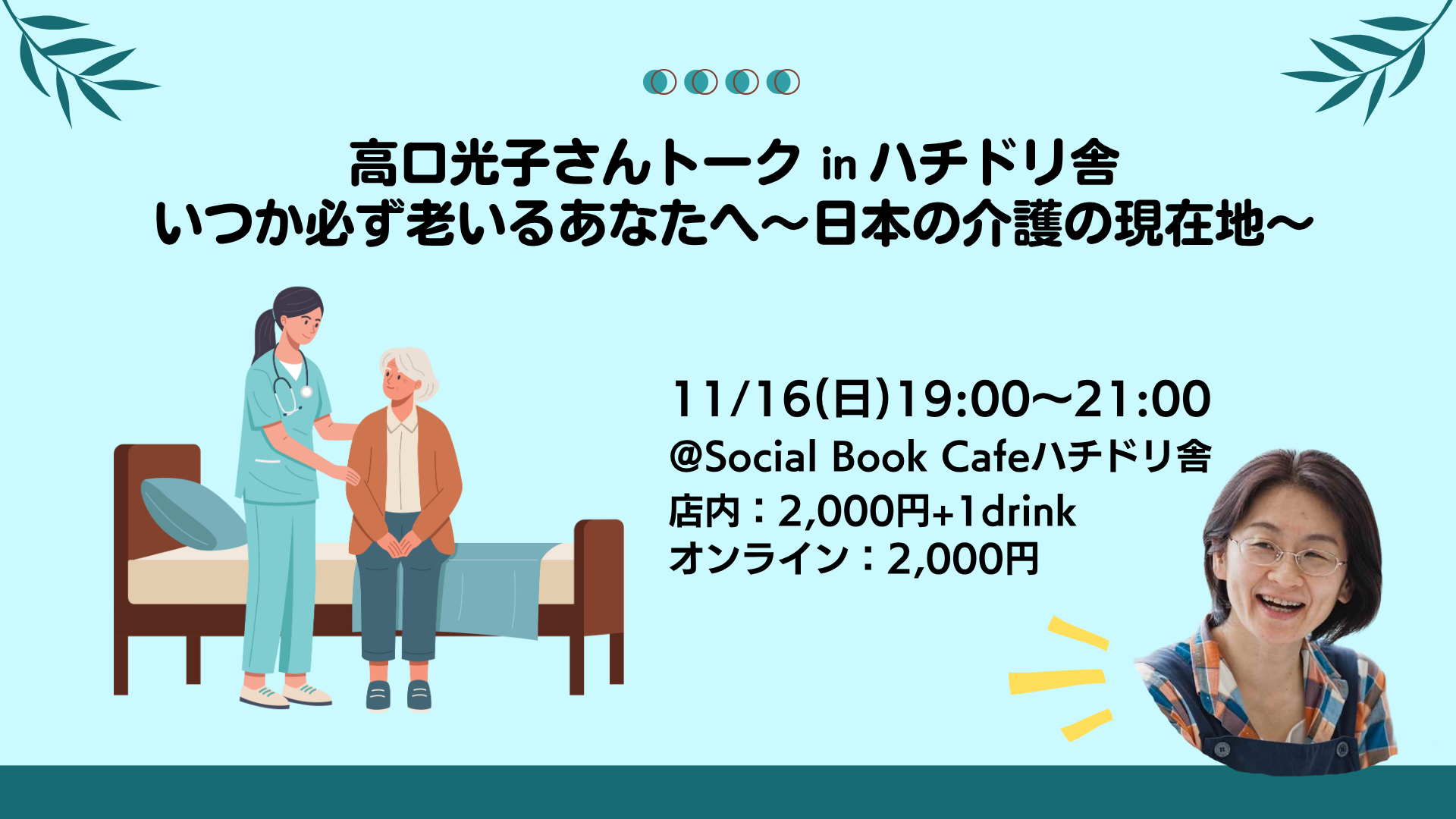 研修参加費 店内2,000円+1ドリンク オンライン2,000円いつか必ず老いるあなたへ~日本の介護の現在地~