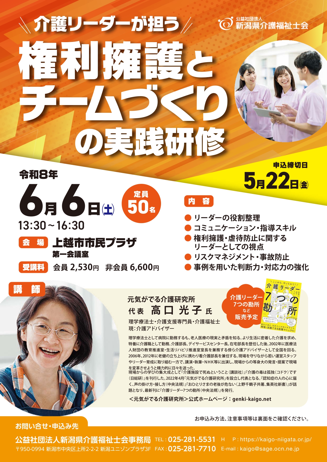 参加申し込み/お問い合わせ TEL025-281-5531 公益社団法人 新潟県介護福祉士会事務局