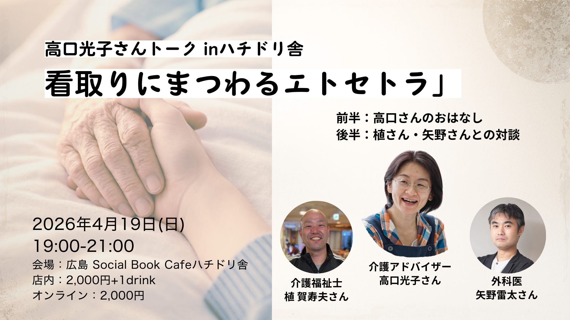 参加費 店内2,000円+1drink オンライン2,000円 看取りにまつわるエトセトラ